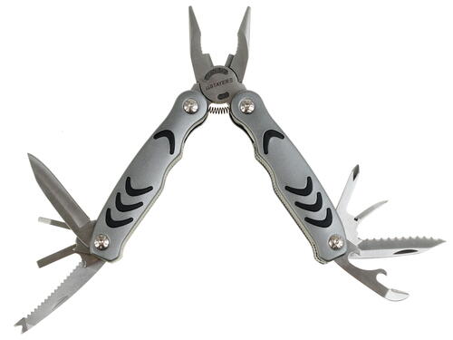Многофункциональный инструмент STAYER PROFESSIONAL 22852_z01 зарекомендовал себя в качестве лучшего товарища любого мужчины как в процессе проведения небольшого ремонта в доме, так и во время похода. Данный прибор включает в себя 12 разнообразных инструментов, в число которых входит нож, открывалка, три вида отверток и многое другое.